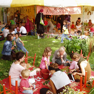 Lasten Aurinkojhhla (Barnas solfest) er et økologisk, kunstnerisk og vitenskapelig arrangement for hele familien – harmoni mellom natur og mennesker gjennom workshops, utstillinger og forestillinger. Solfesten inspirerer unge og gamle deltagere til å gjøre økologisk bevisste valg og viser hvordan trivsel i vår verden er avhengig av oss og våre gjerninger og hvordan vår jord er en helhet som vi er en del av. På veien dit gjør vi oss kjent med vårt miljø. Estetikk og energi lager vi med våre egne hender. Sol festens Natur Skole viser oss fenomener i naturen, og de naturlige og resirkulerbare hyttene lager vi fantasifulle verktøy. Les mer her.
